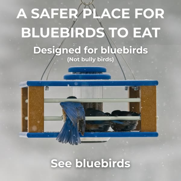 🏠🦜Bring more bluebirds to your backyard with the Deluxe Bluebird Feeder — designed for quadruple the capacity so your birds stay longer and visit more often. Inspired by the beloved Gilbertson feeder, this upgraded version lets you fill up with even more mealworms without constant refills.